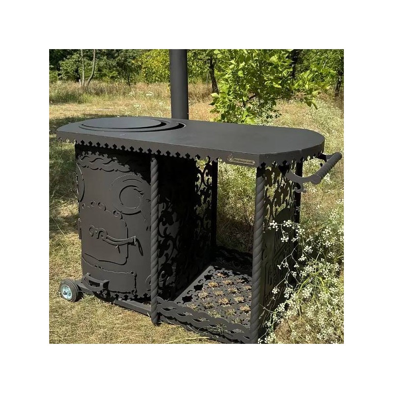 Der Ofen „Kolchida“ vereint traditionelle Outdoor-Kochmethoden mit moderner Funktionalität und Design. Er ist für Kessel mit einem Fassungsvermögen von 10 bis 30 Litern ausgelegt und eignet sich ideal für große Familienessen, Feste im Freien oder professionelle Outdoor-Küche.