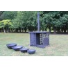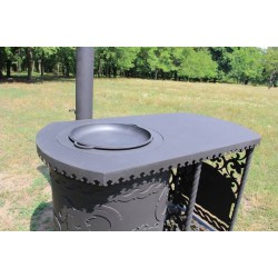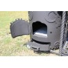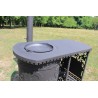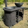 Kochofen „Kolchida“ für 10–30 Liter Kessel. Robuste Ausführung mit Arbeitsfläche, Holzfach, Aschekasten und Zugregelung. Leicht beweglich dank Rädern.