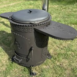 Seitliches Regal für Utschak-Modelle Kazbek-1 und Buchara-2 – ein praktisches Zubehörteil, das links, rechts oder beidseitig an Ihrem Ofen montiert werden kann. Besonders praktisch beim Kochen im Freien, wenn alles griffbereit sein soll.