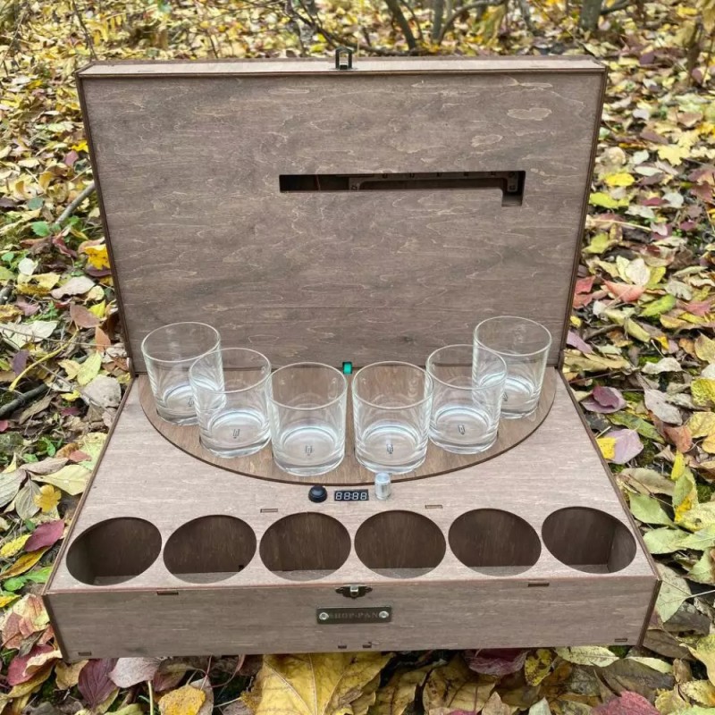 Origineller Alkoholspender aus Holz – Limited Edition! Automatischer & manueller Betrieb. Perfekt für Feiern, inklusive Gläser & USB-Kabel. Nur 1 Stück auf Lager!