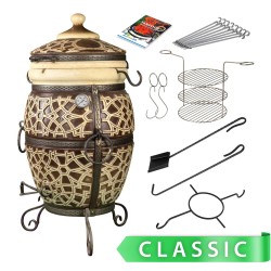 Thanks to the very good thermal insulation, the tandoor keeps the heat for a long time, which is enough for the preparation of delicious dishes. In addition, the dishes prepared in the fire clay oven are not only tasty, but also healthy and very useful. Also in the tandoor it is possible to prepare some dishes at the same time. The heat is distributed evenly throughout the interior of the oven and the cooking process is very gentle. Visual appearance and technical characteristics Fire clay is a natural material that withstands the strongest temperature changes. Inside the oven you can attach flat breads to roast, and with the various accessories – hooks, skewers and two or three tier racks – you can prepare many other dishes. There is a separate hook for hanging meat, and with a special forged steel ring you can cook on the cauldron.