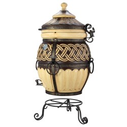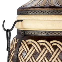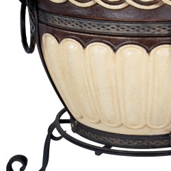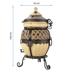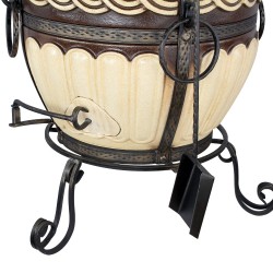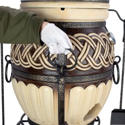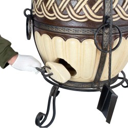 The tandoor is coated with food-safe paint, protected by several layers of glaze and fired at 1,200 °C. This finish makes it easy to maintain and preserves its attractive appearance for many years.