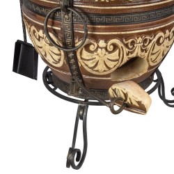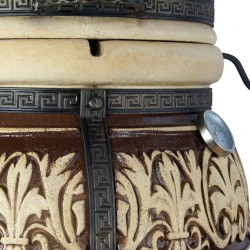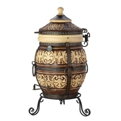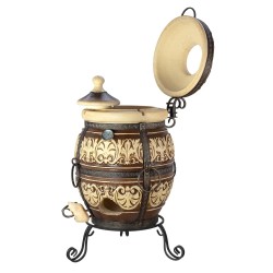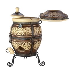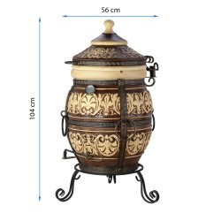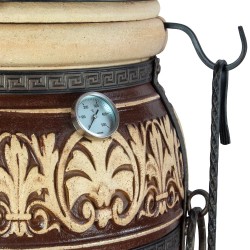 Знаете ли вы, что тепло может быть не только теплым и комфортным, но и вкусным? Если нет, то вам обязательно стоит попробовать шамотную печь, пришедшую к нам из Средней Азии – тандыр. На Кавказе и в Средней Азии его издавна успешно используют для приготовления необычайно вкусных, полезных блюд. Что приготовить? В этой уникальной печи можно приготовить множество вкуснейших домашних блюд: из мяса и птицы; кролики и рыба; перепела и дичь; рыба, крабы; лепешки и пицца; лепешки, самса; Овощи и фрукты... Размеры тандыра позволяют зажарить даже целую баранью ногу. Первые блюда, каши и плов, приготовленные в тандыре, получаются необыкновенно ароматными, разнообразию и фантазии в приготовлении и создании рецептов нет предела. Они обязательно оправдают ваши ожидания. Технология приготовления Способ приготовления в тандыре довольно интересен. Еда готовится не на огне, а за счет инфракрасного излучения, исходящего от внутренней поверхности тандыра. Чтобы приготовить в тандыре вкусное мясо, жареные овощи или другие блюда, его нужно наполнить углем или дровами. После этого разводят костер и ждут, пока топливо полностью сгорит. Шамот, из которого изготовлен тандыр, прекрасно поглощает тепло и по окончании горения дров стенки достигают температуры 250-400°С. Благодаря очень хорошей теплоизоляции тандыр сохраняет тепло в течение длительного периода времени, которого достаточно для приготовления вкусных блюд. Кроме того, еда, приготовленная в шамотной печи, не только вкусна, но еще полезна и очень полезна. В тандыре также можно готовить несколько блюд одновременно. Тепло распределяется равномерно по всей внутренней части духовки, а процесс приготовления очень щадящий. Внешний вид и технические характеристики Шамот – природный материал, способный выдерживать самые большие перепады температур. Внутри духовки можно прикрепить лепёшки для жарки, а с помощью различных аксессуаров – крючков, шампуров и двух- или трёхъярусных решеток – можно приготовить множество других блюд. Имеется отдельный крючок для подвешивания мяса, а специальное кованое стальное кольцо позволяет готовить на котле. Готовьте любимые блюда круглый год! В холодные зимние дни это лучшее средство от голода. Холод и плохое настроение!