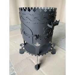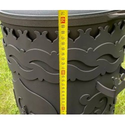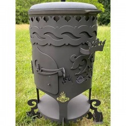 Идеально подходит для татарского казана объемом 8 литров (диаметр 34 см), который полностью погружается в отверстие печи.