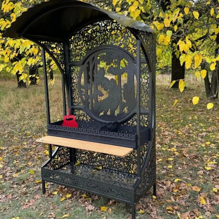 Мангал "Хантер" - стационарный мангал под крышей, большой дровницей и дубовой полкой, новинка 2024 года - уникальный и качественный с изображением зверей.